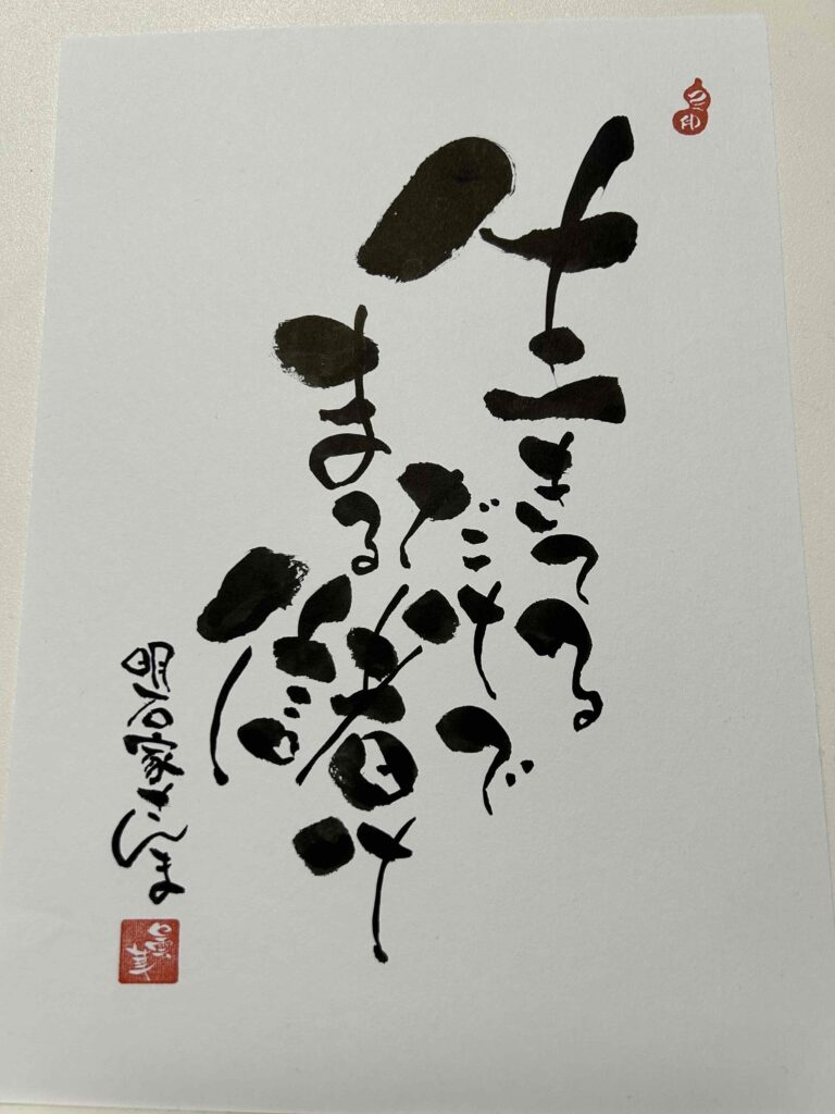 先ほどと逆さまです。よくわかりませんが、とにかく天命にお任せして、最後まで精一杯に努力していくしかないのでしょう。これまで社会福祉協議会の地区協力員として、人々とかかわり何することなく、ただ「元気か」、「大丈夫か」などと、人さまに声かけをしてきました。なぜなら〝人〟と交わること、それが私の元気のもとだからです。